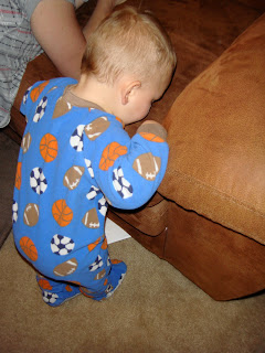 Parker's prayers are paying off (though we're still not sure how he is going to bless the "superheroes" that he prays for nightly). Evidence of this is found in watching his little brother begin his praying habits. Nightly we kneel down to pray and wait for Brock to come running to join us. He buries his head in the couch while Parker begins his prayer.